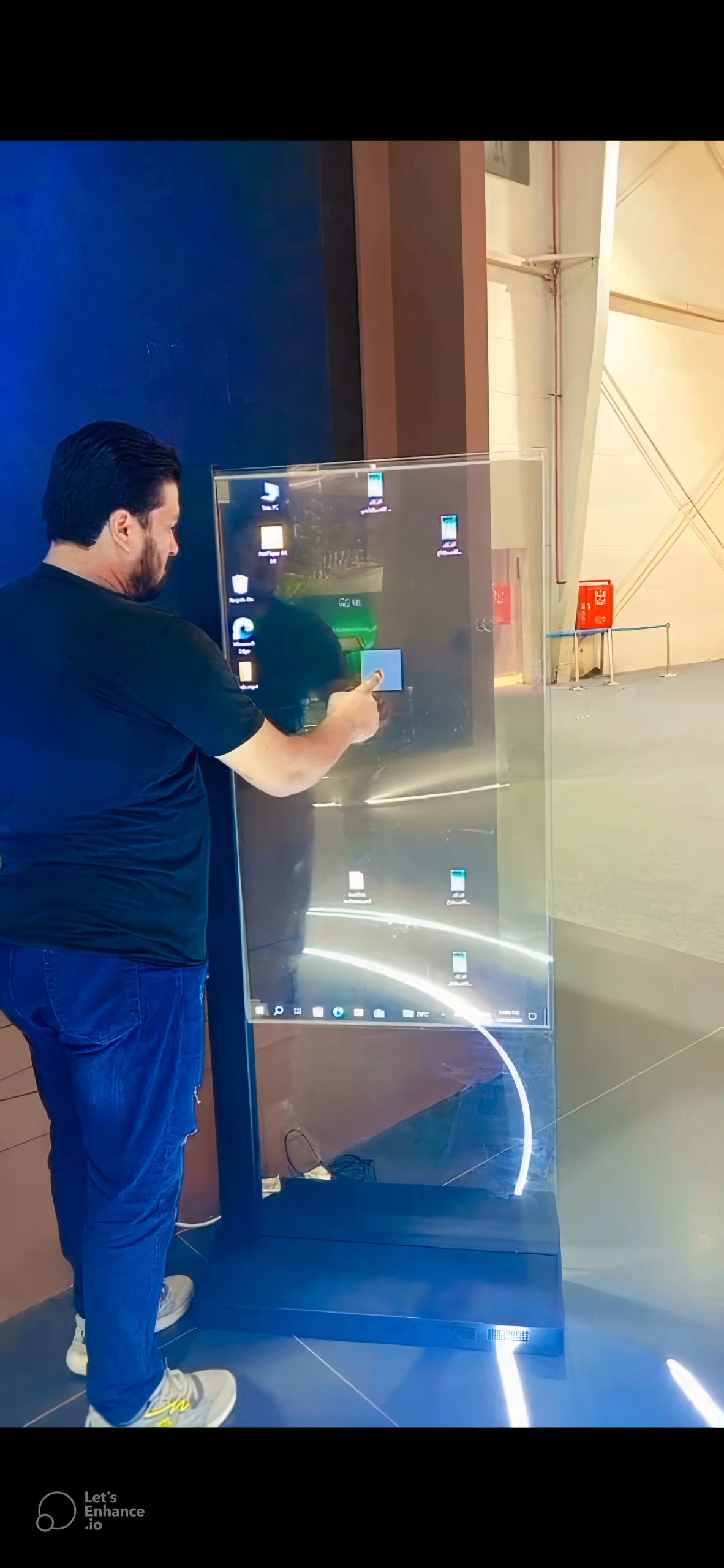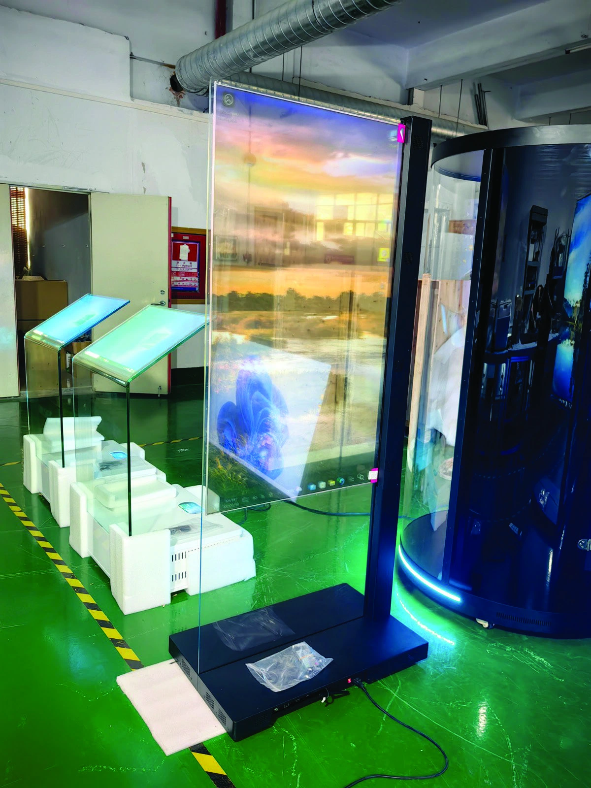 Innovative screens with a transparent surface and touch capabilities, combining futuristic design with functionality.