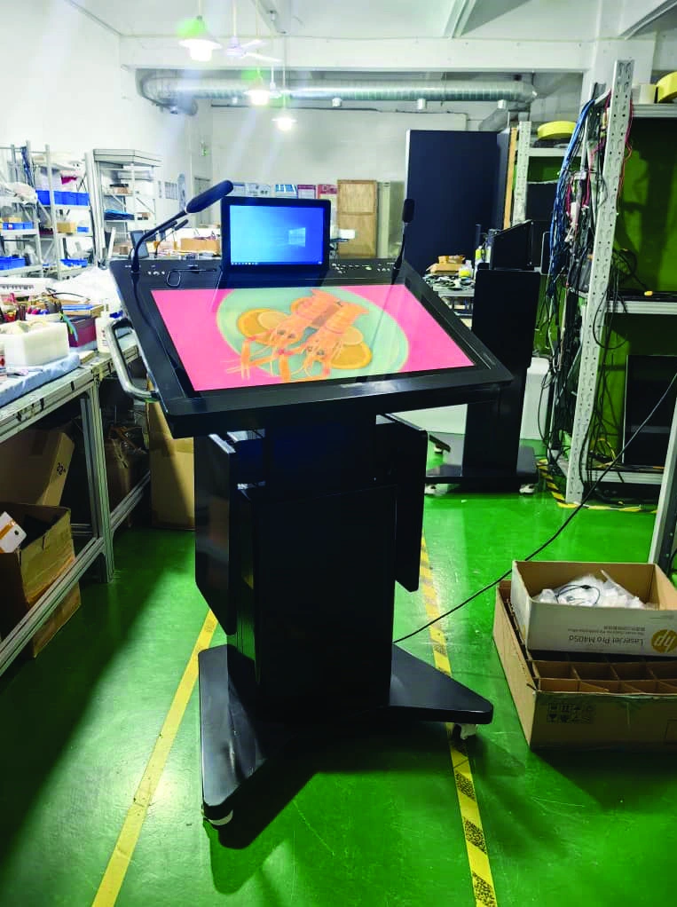 High-tech podium equipped with built-in screens and audio systems for smooth and professional presentations.